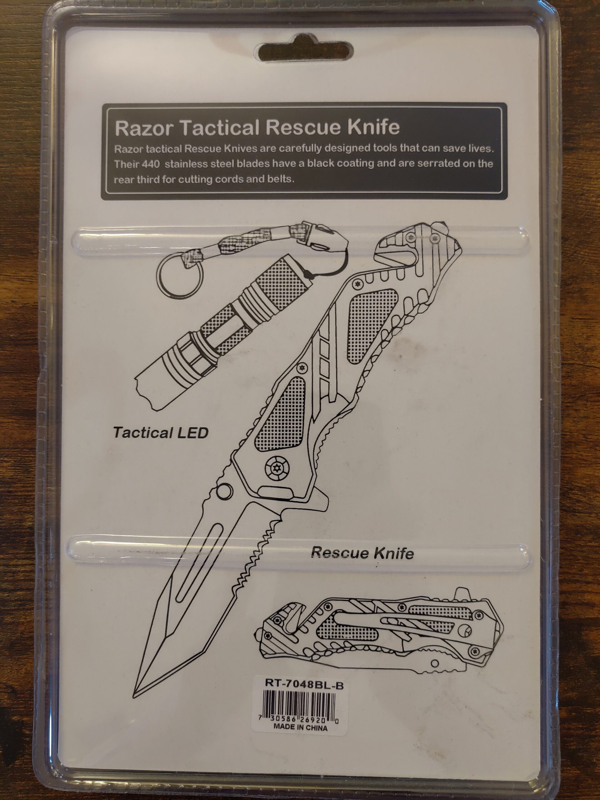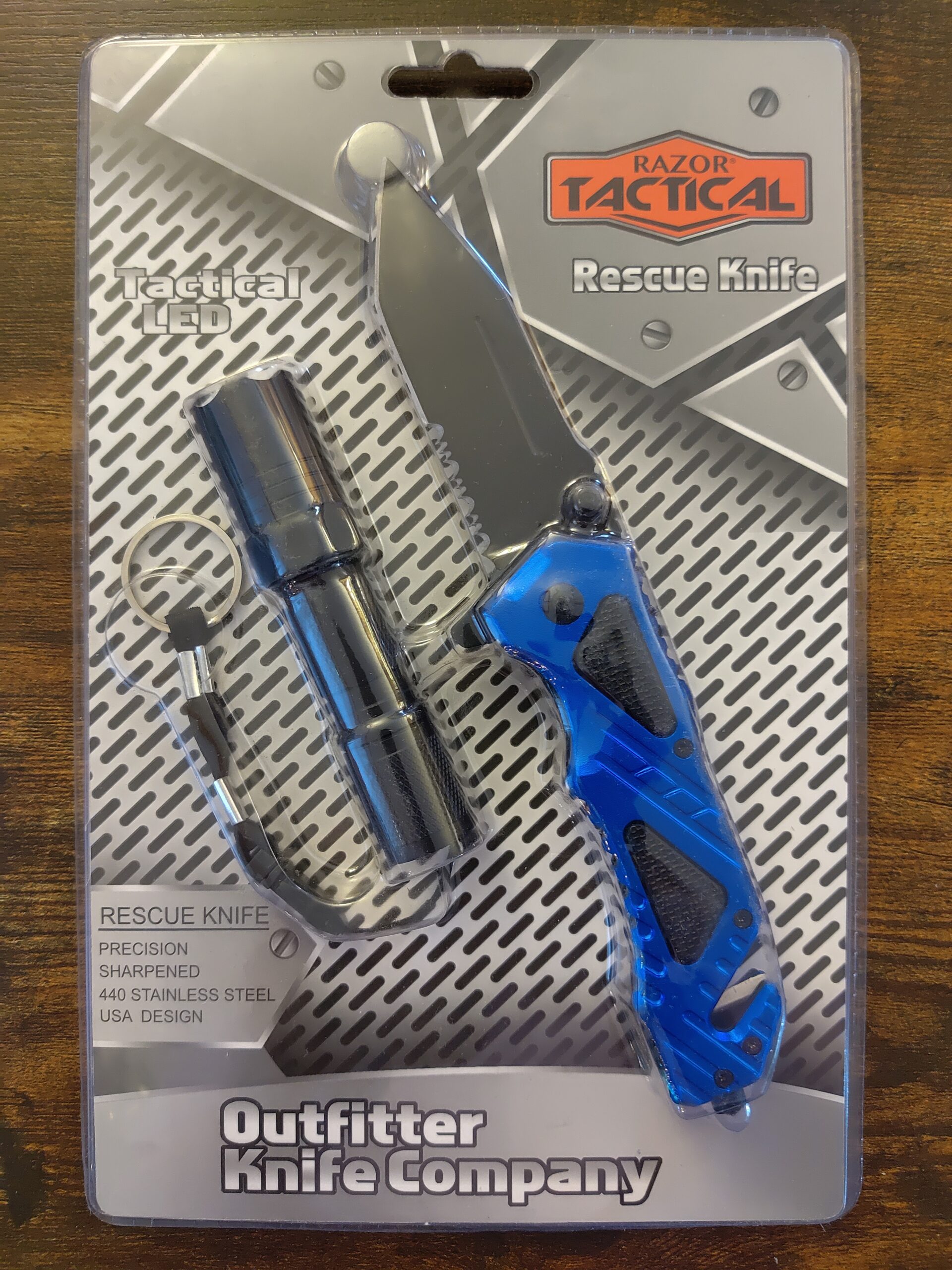 Razor Tactical Rescue Pocket Knife w/LED light set 3.25″ Blade Blue